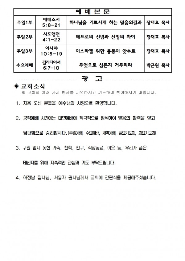 2022년 2월 20일 예배본문 & 교회소식 페이지 정보 작성자 성은교회 작성일22-02-18 16:05 조회5,954회 관련링크 이전글 다음글 목록 본문 2022년 2월 20일 예배본문 & 교회소식 이전글 다음글 목록
