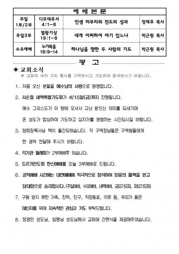 2022년 3월 13일 예배본문 & 교회소식 페이지 정보 작성자 성은교회 작성일22-03-11 16:47 조회5,928회 관련링크 이전글 다음글 목록 본문 2022년 3월 13일 예배본문 & 교회소식 이전글 다음글 목록