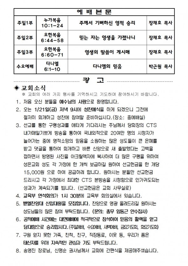 2022년 1월 16일 예배본문 & 교회소식 페이지 정보 작성자 성은교회 작성일22-01-14 17:14 조회6,104회 관련링크 이전글 다음글 목록 본문 2022년 1월 16일 예배본문 & 교회소식 이전글 다음글 목록
