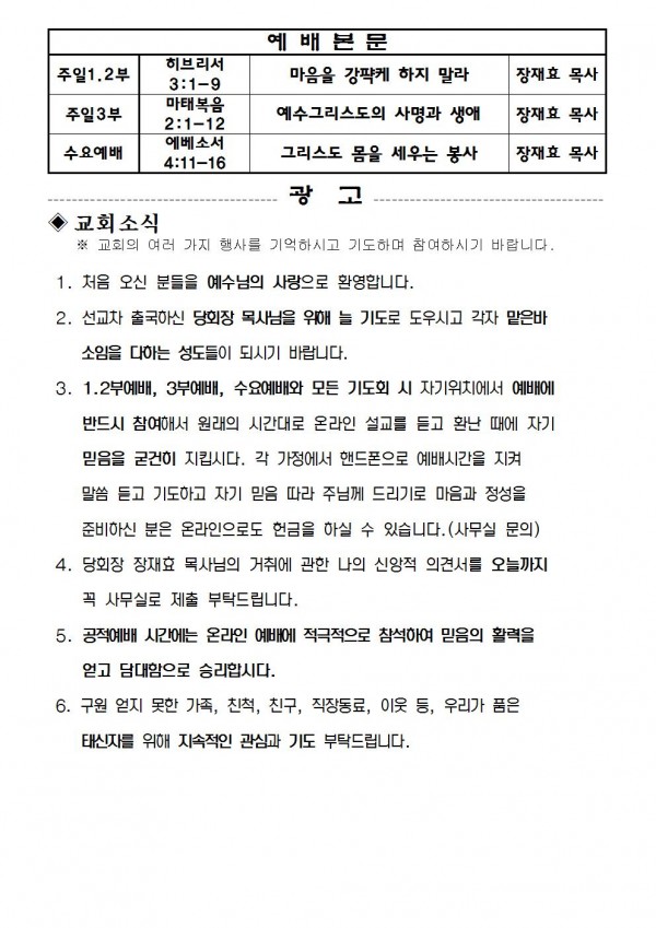 2021년 7월 18일 예배본문 & 교회소식 페이지 정보 작성자 성은교회 작성일21-07-16 14:53 조회6,364회 관련링크 이전글 다음글 목록 본문 2021년 7월 18일 예배본문 & 교회소식 이전글 다음글 목록