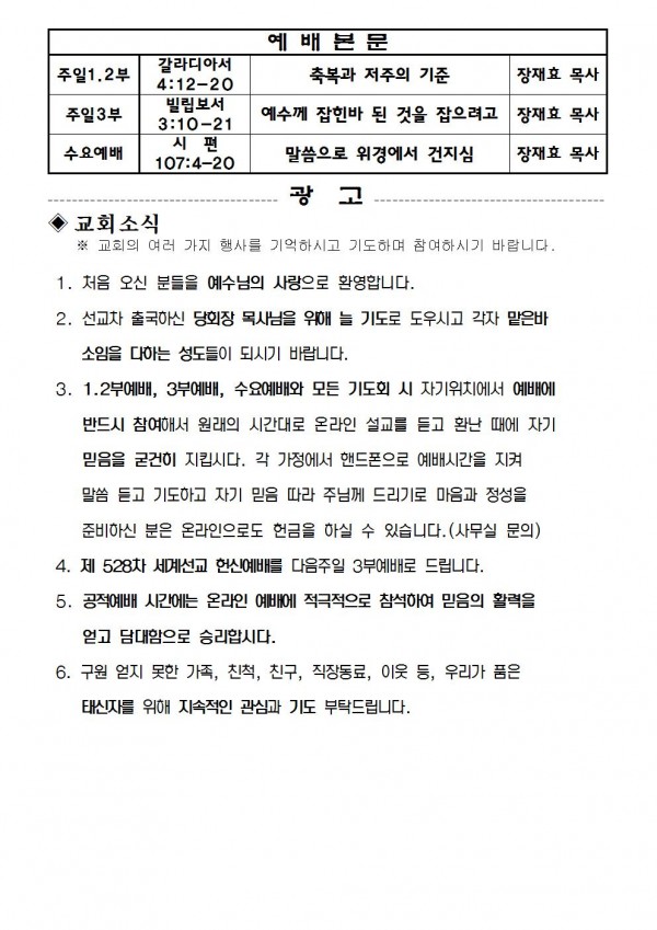 2021년 7월 25일 예배본문 & 교회소식 페이지 정보 작성자 성은교회 작성일21-07-23 16:56 조회6,419회 관련링크 이전글 다음글 목록 본문 2021년 7월 25일 예배본문 & 교회소식 이전글 다음글 목록