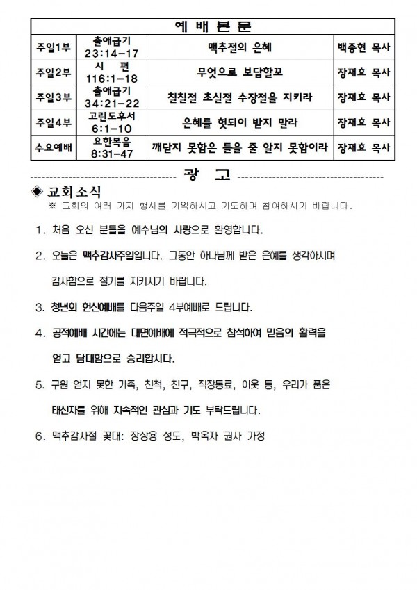 2021년 8월 22일 예배본문 & 교회소식 페이지 정보 작성자 성은교회 작성일21-08-20 17:41 조회6,252회 관련링크 이전글 다음글 목록 본문 2021년 8월 22일 예배본문 & 교회소식 이전글 다음글 목록