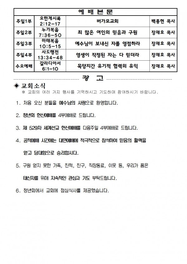 2021년 8월 29일 예배본문 & 교회소식 페이지 정보 작성자 성은교회 작성일21-08-27 16:23 조회6,297회 관련링크 이전글 다음글 목록 본문 2021년 8월 29일 예배본문 & 교회소식 이전글 다음글 목록