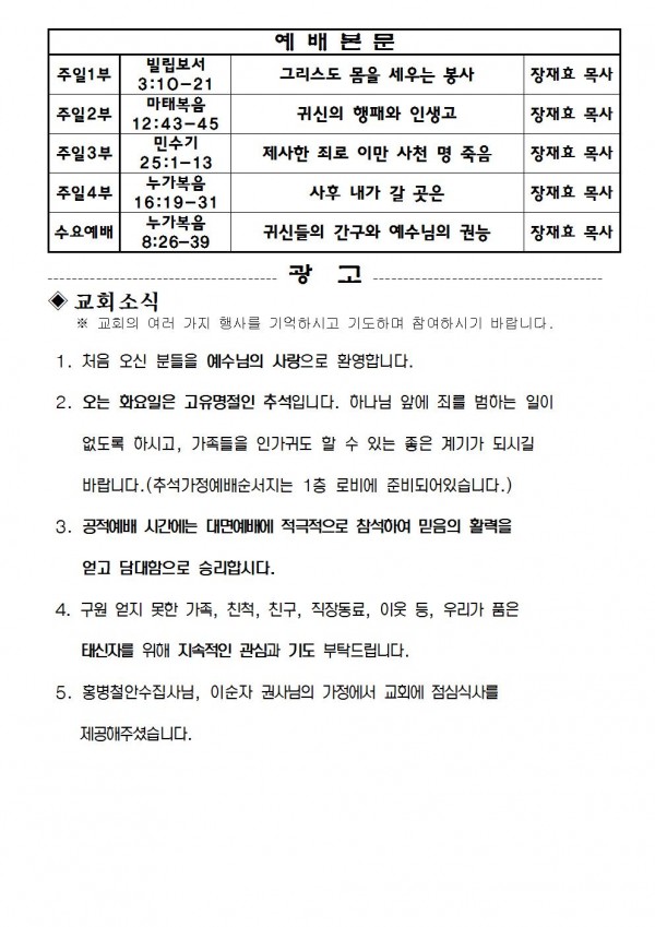 2021년 9월 19일 예배본문 & 교회소식 페이지 정보 작성자 성은교회 작성일21-09-17 15:07 조회6,157회 관련링크 이전글 다음글 목록 본문 2021년 9월 19일 예배본문 & 교회소식 이전글 다음글 목록