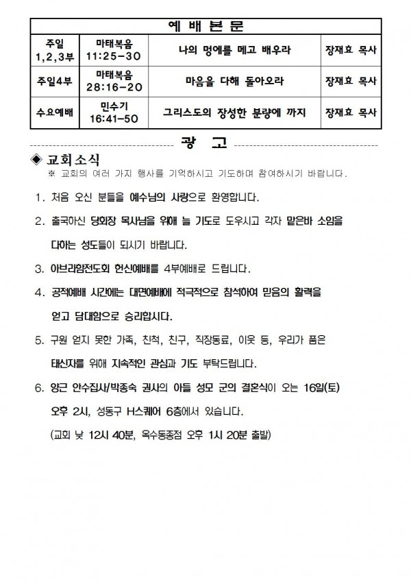 2021년 10월 10일 예배본문 & 교회소식 페이지 정보 작성자 성은교회 작성일21-10-08 16:38 조회6,176회 관련링크 이전글 다음글 목록 본문 2021년 10월 10일 예배본문 & 교회소식 이전글 다음글 목록