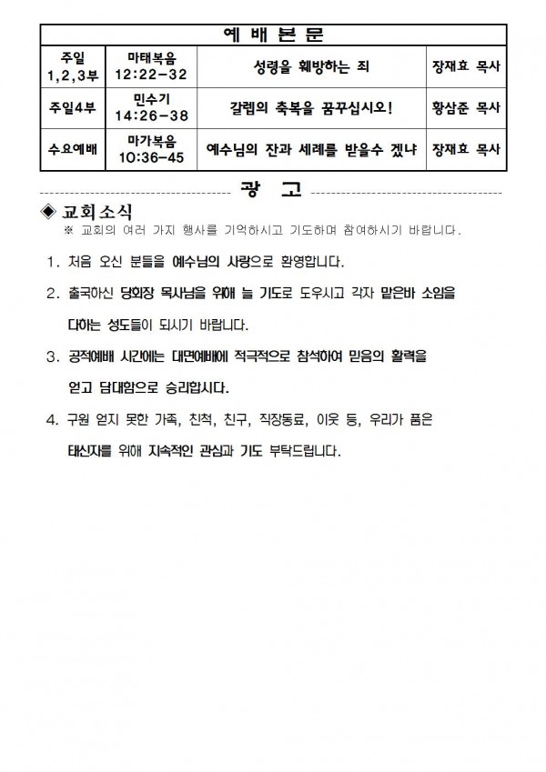 2021년 10월 17일 예배본문 & 교회소식 페이지 정보 작성자 성은교회 작성일21-10-15 14:10 조회6,170회 관련링크 이전글 다음글 목록 본문 2021년 10월 17일 예배본문 & 교회소식 이전글 다음글 목록