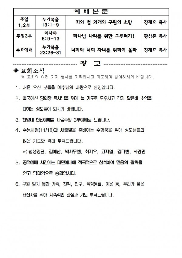 2021년 10월 24일 예배본문 & 교회소식 페이지 정보 작성자 성은교회 작성일21-10-22 14:22 조회6,180회 관련링크 이전글 다음글 목록 본문 2021년 10월 24일 예배본문 & 교회소식 이전글 다음글 목록