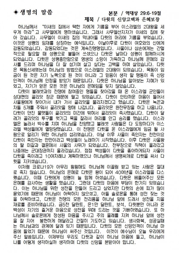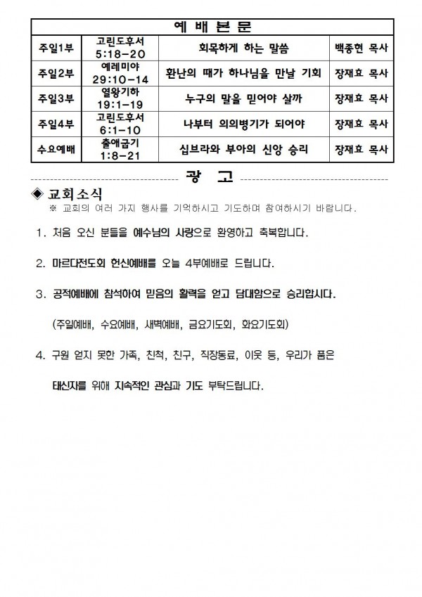 2021년 1월 10일 예배본문 & 교회소식 페이지 정보 작성자 성은교회 작성일21-01-08 17:01 조회6,854회 관련링크 이전글 다음글 목록 본문 2021년 1월 10일 예배본문 & 교회소식 이전글 다음글 목록
