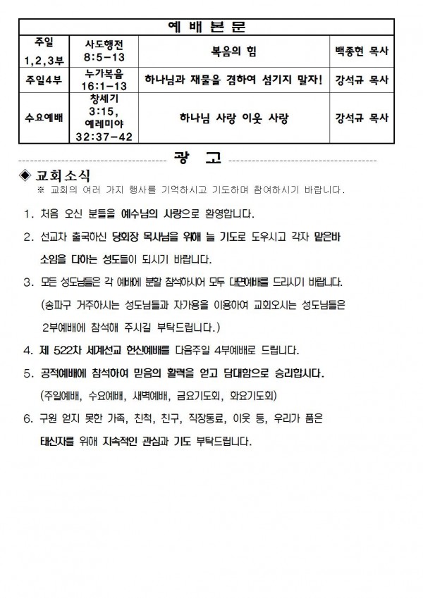 2021년 1월 31일 예배본문 & 교회소식 페이지 정보 작성자 성은교회 작성일21-01-29 17:10 조회6,667회 관련링크 이전글 다음글 목록 본문 2021년 1월 31일 예배본문 & 교회소식 이전글 다음글 목록