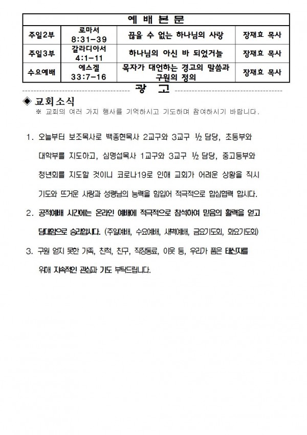 2020년 9월 20일 예배본문 & 교회소식 페이지 정보 작성자 성은교회 작성일20-09-18 13:58 조회7,219회 관련링크 이전글 다음글 목록 본문 2020년 9월 20일 예배본문 & 교회소식 이전글 다음글 목록