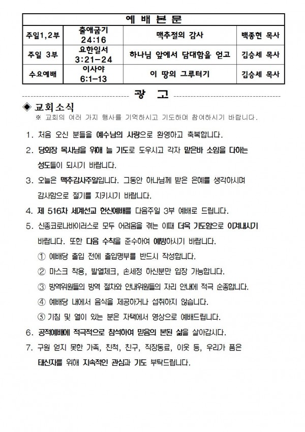 2020년 7월 26일 예배본문 & 교회소식 페이지 정보 작성자 성은교회 작성일20-07-24 16:30 조회7,064회 관련링크 이전글 다음글 목록 본문 2020년 7월 26일 예배본문 & 교회소식 이전글 다음글 목록