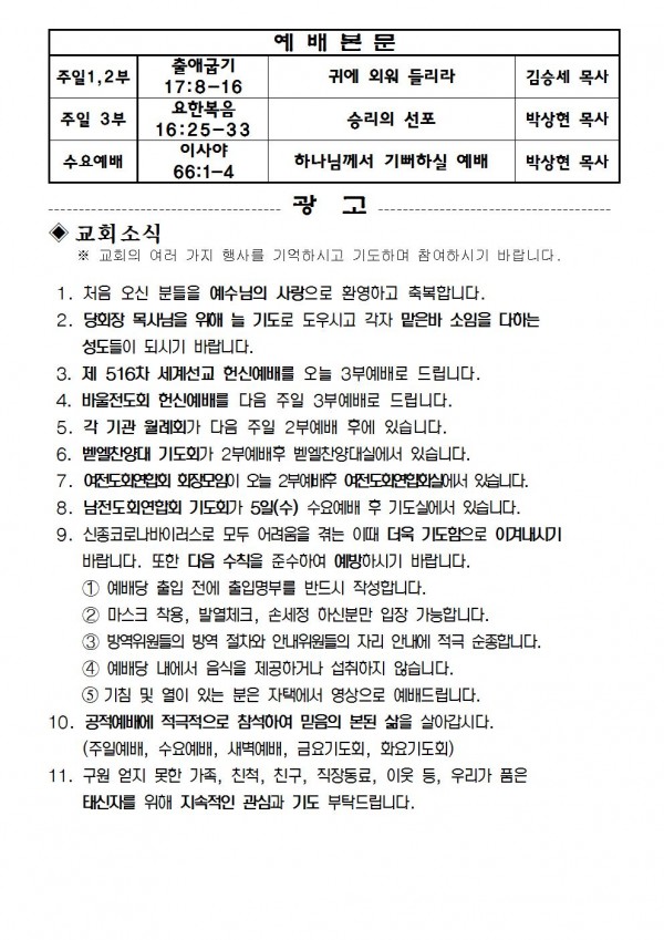 2020년 8월 2일 예배본문 & 교회소식 페이지 정보 작성자 성은교회 작성일20-07-31 15:57 조회7,079회 관련링크 이전글 다음글 목록 본문 2020년 8월 2일 예배본문 & 교회소식 이전글 다음글 목록
