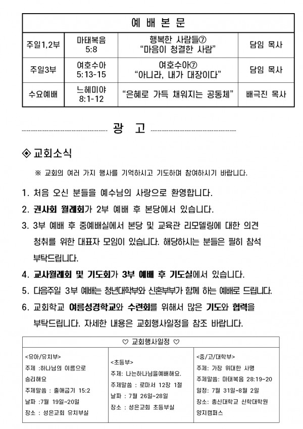 2025년 6월 22일 예배본문 & 교회소식 페이지 정보 작성자 성은교회 작성일25-06-20 15:21 조회2,620회 관련링크 이전글 다음글 목록 본문 2025년 6월 22일 예배본문 & 교회소식 이전글 다음글 목록