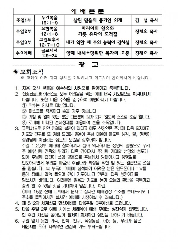 2020년 3월 29일 예배본문 & 교회소식 페이지 정보 작성자 성은교회 작성일20-03-27 17:08 조회7,468회 관련링크 이전글 다음글 목록 본문 2020년 3월 29일 예배본문 & 교회소식 이전글 다음글 목록