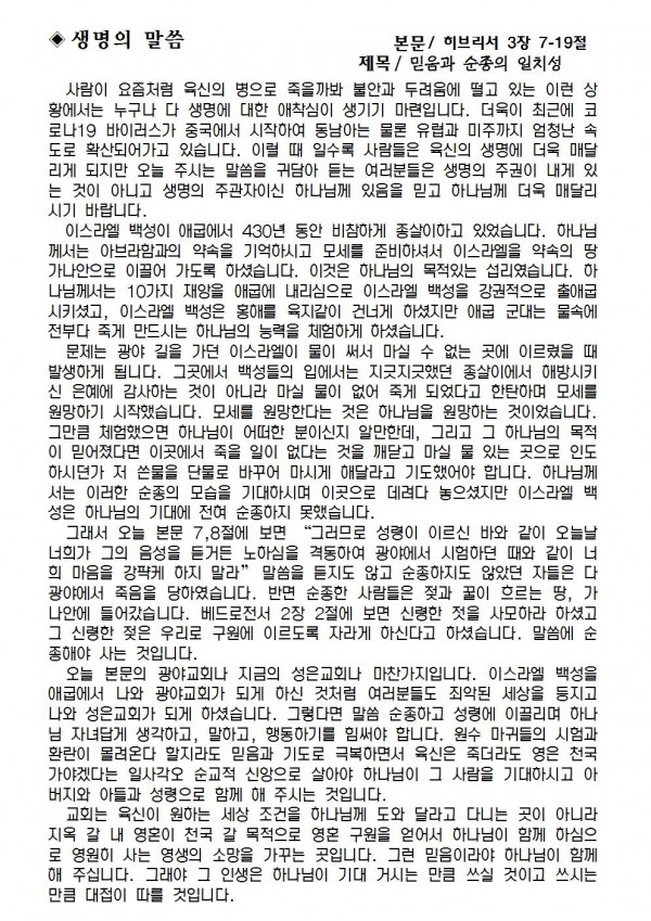 2020년 4월 26일 예배본문 & 교회소식 페이지 정보 작성자 성은교회 작성일20-04-24 16:32 조회7,237회 관련링크 이전글 다음글 목록 본문 2020년 4월 26일 예배본문 & 교회소식 이전글 다음글 목록