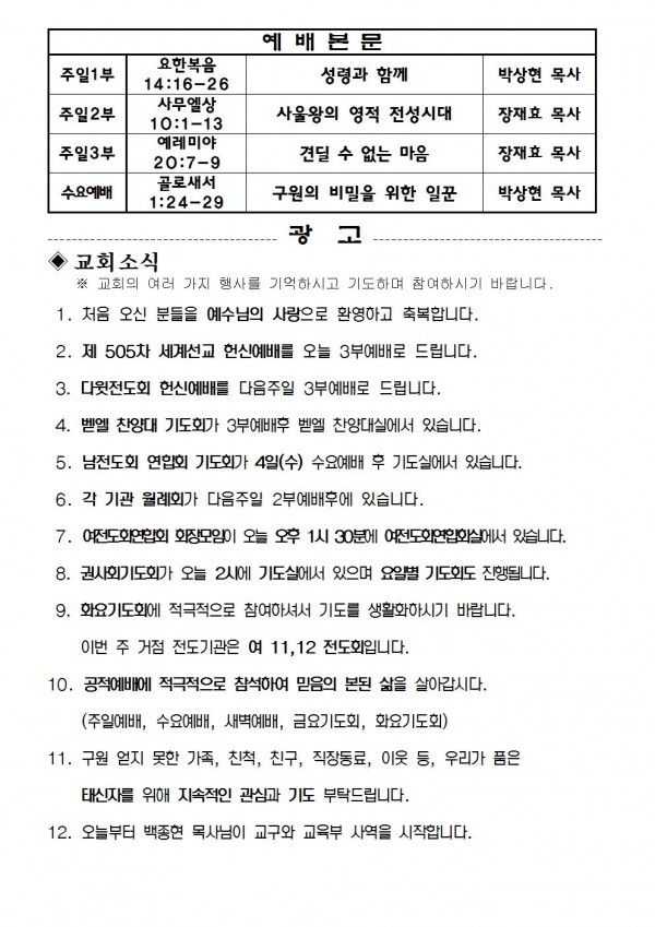 2019년 9월 1일 예배본문 & 교회소식 페이지 정보 작성자 성은교회 작성일19-08-30 17:40 조회8,362회 관련링크 이전글 다음글 목록 본문 2019년 9월 1일 예배본문 & 교회소식 이전글 다음글 목록