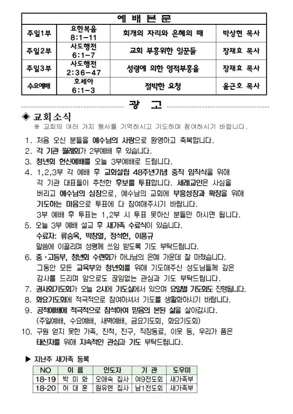2018 년 8월 12일 예배본문 & 교회소식 페이지 정보 작성자 최고관리자 작성일18-08-10 18:07 조회8,053회 관련링크 이전글 다음글 목록 본문 2018 년 8월 12일 예배본문 & 교회소식 이전글 다음글 목록