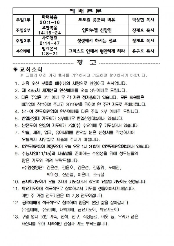2018 년 11월 4일 예배본문 & 교회소식 페이지 정보 작성자 성은교회 작성일18-11-02 17:36 조회8,125회 관련링크 이전글 다음글 목록 본문 2018 년 11월 4일 예배본문 & 교회소식 이전글 다음글 목록