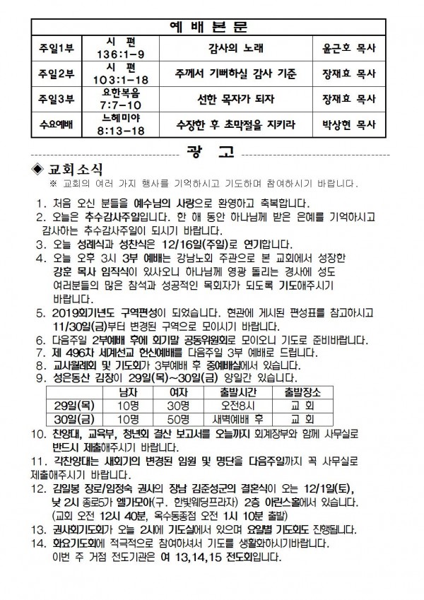 2018 년 11월 25일 예배본문 & 교회소식 페이지 정보 작성자 성은교회 작성일18-11-23 18:02 조회8,219회 관련링크 이전글 다음글 목록 본문 2018 년 11월 25일 예배본문 & 교회소식 이전글 다음글 목록