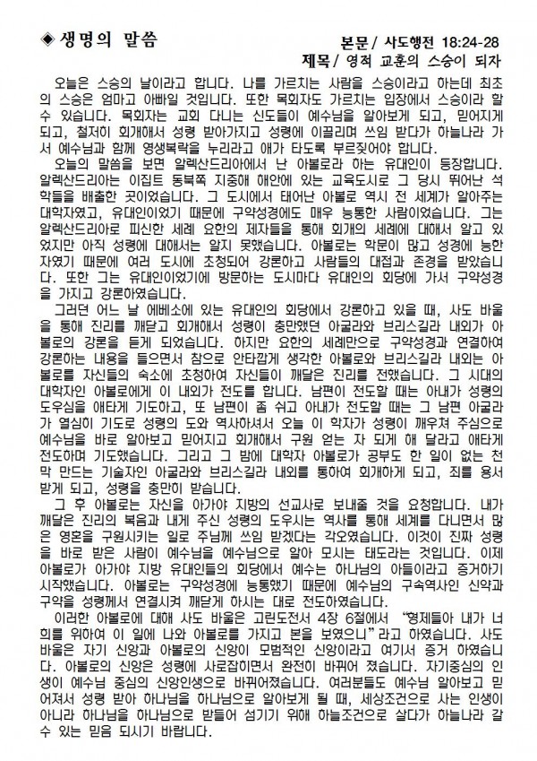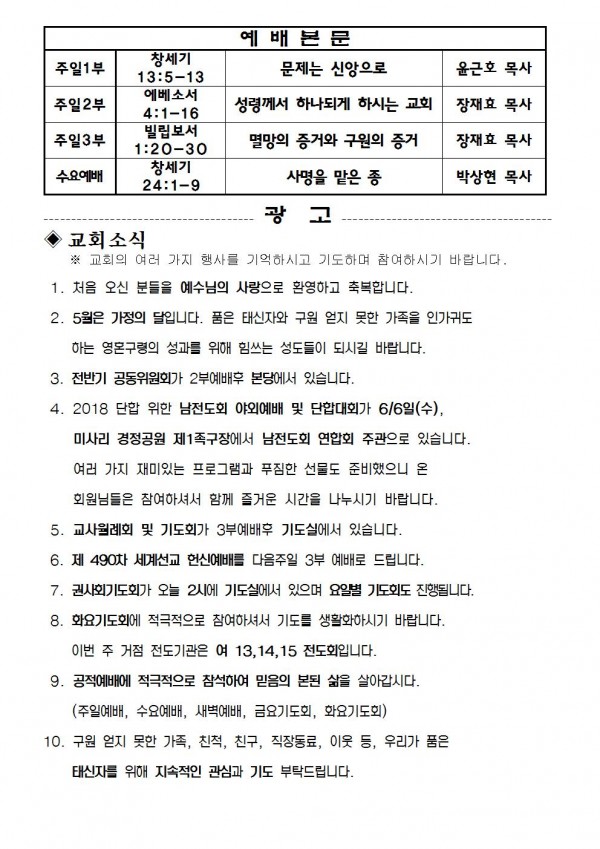 2018 년 5월 27일 예배본문 & 교회소식 페이지 정보 작성자 최고관리자 작성일18-05-25 14:39 조회8,079회 관련링크 이전글 다음글 목록 본문 2018 년 5월 27일 예배본문 & 교회소식 이전글 다음글 목록
