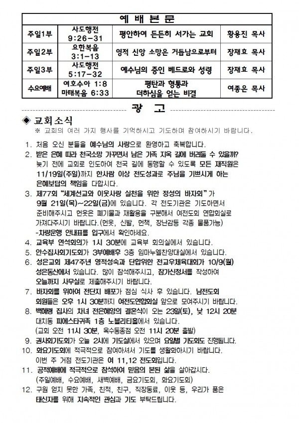 2017년 9월 17일 예배본문 & 교회소식 페이지 정보 작성자 최고관리자 작성일17-09-15 17:56 조회9,449회 관련링크 이전글 다음글 목록 본문 2017년 9월 17일 예배본문 & 교회소식 이전글 다음글 목록