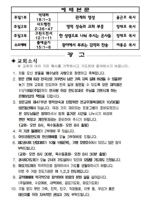 2017년 10월 8일 예배본문 & 교회소식 페이지 정보 작성자 최고관리자 작성일17-10-04 16:05 조회8,958회 관련링크 이전글 다음글 목록 본문 2017년 10월 8일 예배본문 & 교회소식 이전글 다음글 목록