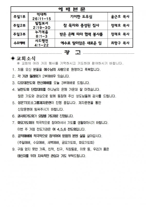 2017년 6월 11일 예배본문 & 교회소식 페이지 정보 작성자 최고관리자 작성일17-06-11 09:19 조회10,593회 관련링크 이전글 다음글 목록 본문 2017년 6월 11일 예배본문 & 교회소식 이전글 다음글 목록