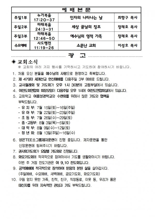 2017년 6월 25일 예배본문 & 교회소식 페이지 정보 작성자 최고관리자 작성일17-06-23 16:15 조회10,273회 관련링크 이전글 다음글 목록 본문 2017년 6월 25일 예배본문 & 교회소식 이전글 다음글 목록