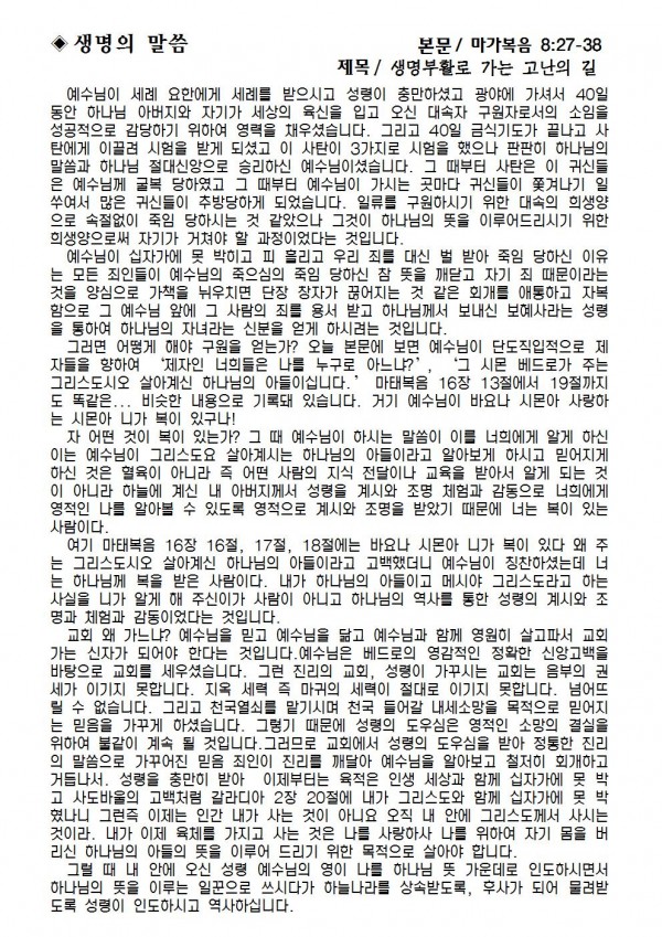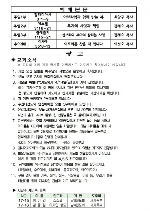 2017년 3월 12일 예배본문 & 교회소식 페이지 정보 작성자 최고관리자 작성일17-03-10 16:27 조회9,370회 관련링크 이전글 다음글 목록 본문 2017년 3월 12일 예배본문 & 교회소식 이전글 다음글 목록