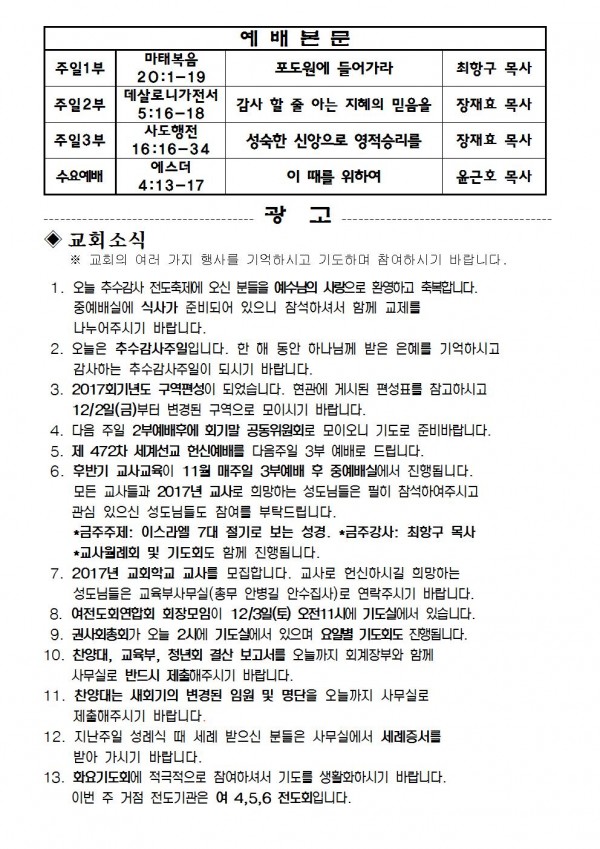 2016년 11월 27일 예배본문 & 교회소식 페이지 정보 작성자 최고관리자 작성일16-11-25 18:10 조회9,412회 관련링크 이전글 다음글 목록 본문 2016년 11월 27일 예배본문 & 교회소식 이전글 다음글 목록