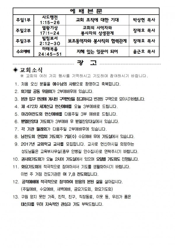 2016년 12월 4일 예배본문 & 교회소식 페이지 정보 작성자 최고관리자 작성일16-12-02 18:14 조회9,268회 관련링크 이전글 다음글 목록 본문 2016년 12월 4일 예배본문 & 교회소식 이전글 다음글 목록