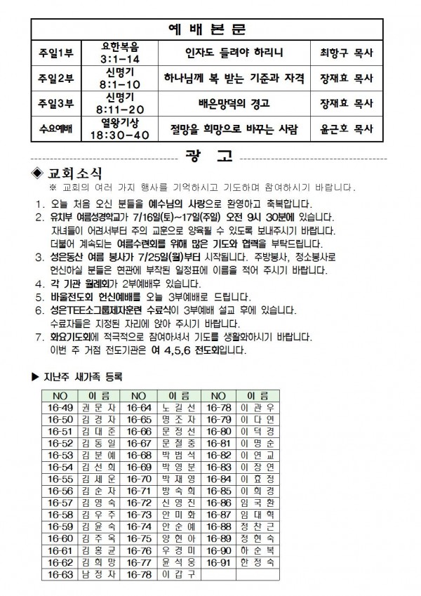 2016년 7월 10일 예배본문 & 교회소식 페이지 정보 작성자 최고관리자 작성일16-07-08 16:07 조회9,442회 관련링크 이전글 다음글 목록 본문 2016년 7월 10일 예배본문 & 교회소식 이전글 다음글 목록