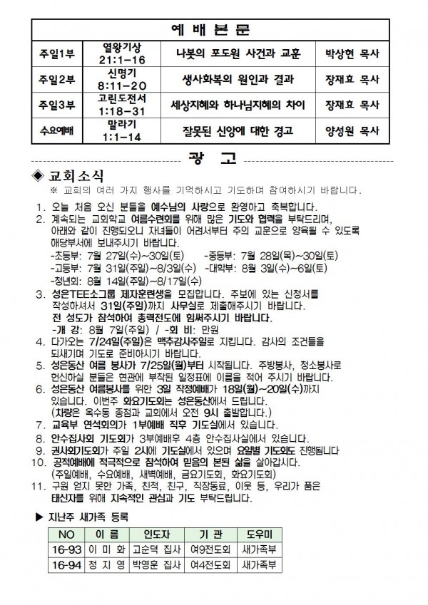 2016년 7월 17일 예배본문 & 교회소식 페이지 정보 작성자 최고관리자 작성일16-07-15 18:31 조회9,632회 관련링크 이전글 다음글 목록 본문 2016년 7월 17일 예배본문 & 교회소식 이전글 다음글 목록