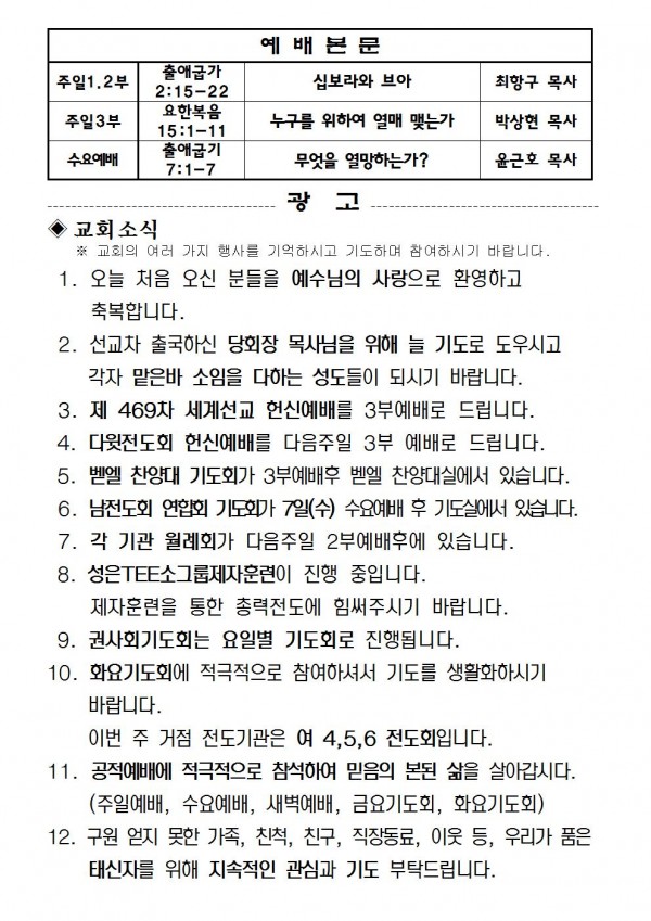 2016년 9월 4일 예배본문 & 교회소식 페이지 정보 작성자 최고관리자 작성일16-09-03 13:34 조회9,296회 관련링크 이전글 다음글 목록 본문 2016년 9월 4일 예배본문 & 교회소식 이전글 다음글 목록