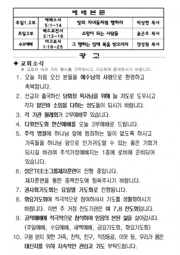 2016년 9월 11일 예배본문 & 교회소식 페이지 정보 작성자 최고관리자 작성일16-09-09 17:27 조회9,268회 관련링크 이전글 다음글 목록 본문 2016년 9월 11일 예배본문 & 교회소식 이전글 다음글 목록