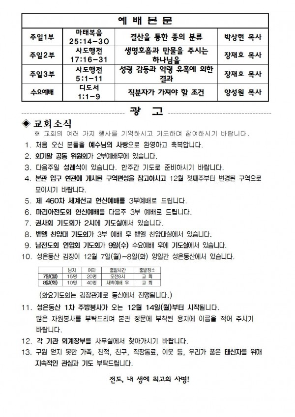 2015년 12월 6일 예배본문 & 교회소식 페이지 정보 작성자 최고관리자 작성일15-12-04 20:17 조회10,212회 관련링크 이전글 다음글 목록 본문 2015년 12월 6일 예배본문 & 교회소식 이전글 다음글 목록