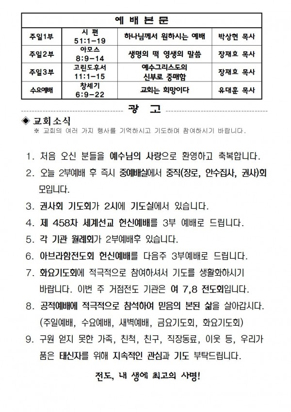 2015년 10월 11일 예배본문 & 교회소식 페이지 정보 작성자 최고관리자 작성일15-10-09 10:26 조회9,578회 관련링크 이전글 다음글 목록 본문 2015년 10월 11일 예배본문 & 교회소식 이전글 다음글 목록