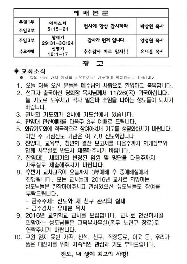 2015년 11월 22일 예배본문 & 교회소식 페이지 정보 작성자 최고관리자 작성일15-11-20 13:27 조회9,954회 관련링크 이전글 다음글 목록 본문 2015년 11월 22일 예배본문 & 교회소식 이전글 다음글 목록