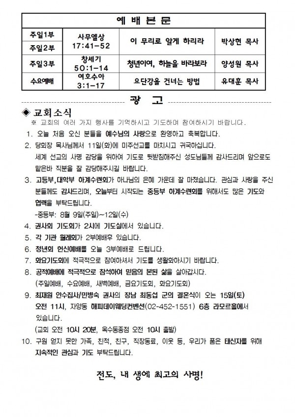 2015년 8월 9일 예배본문 & 교회소식 페이지 정보 작성자 최고관리자 작성일15-08-07 18:14 조회10,578회 관련링크 이전글 다음글 목록 본문 2015년 8월 9일 예배본문 & 교회소식 이전글 다음글 목록
