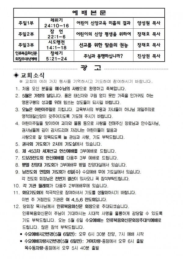 2015년 5월 3일 예배본문 & 교회소식 페이지 정보 작성자 최고관리자 작성일15-05-01 15:46 조회9,971회 관련링크 이전글 다음글 목록 본문 2015년 5월 3일 예배본문 & 교회소식 이전글 다음글 목록