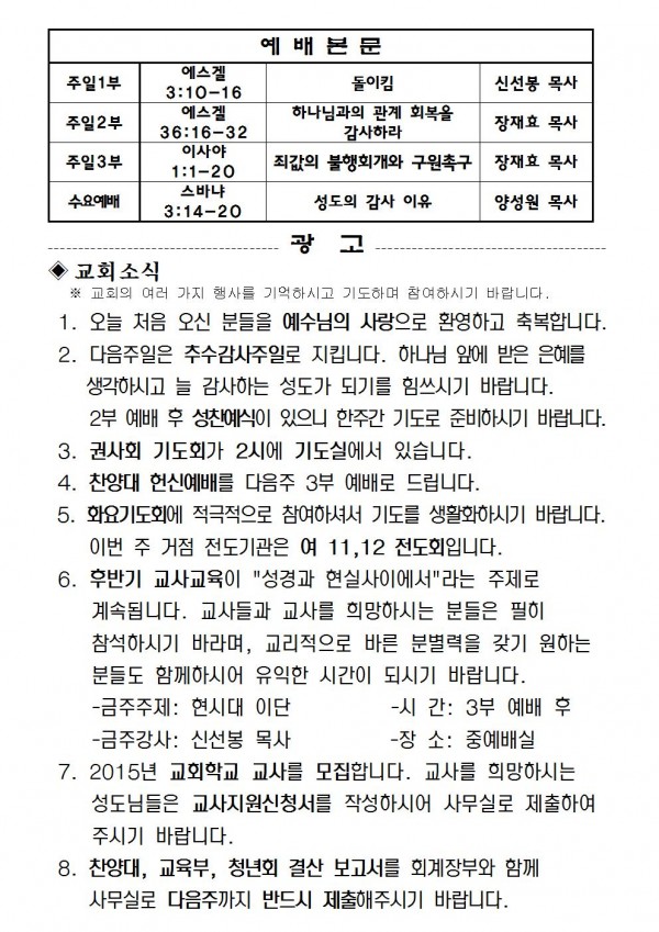 2014년 11월 23일 예배본문 & 교회소식 페이지 정보 작성자 최고관리자 작성일14-11-21 18:03 조회9,888회 관련링크 이전글 다음글 목록 본문 2014년 11월 23일 예배본문 & 교회소식 이전글 다음글 목록