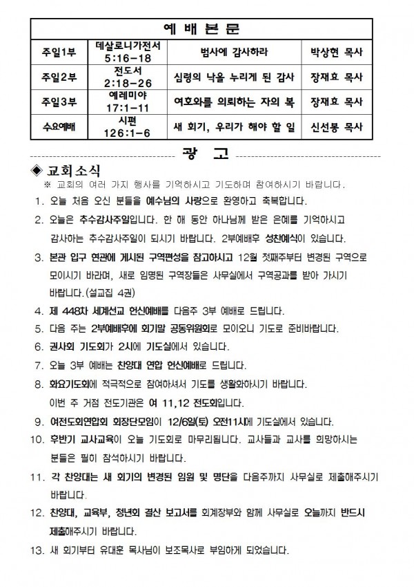 2014년 11월 30일 예배본문 & 교회소식 페이지 정보 작성자 최고관리자 작성일14-11-28 18:24 조회9,922회 관련링크 이전글 다음글 목록 본문 2014년 11월 30일 예배본문 & 교회소식 이전글 다음글 목록