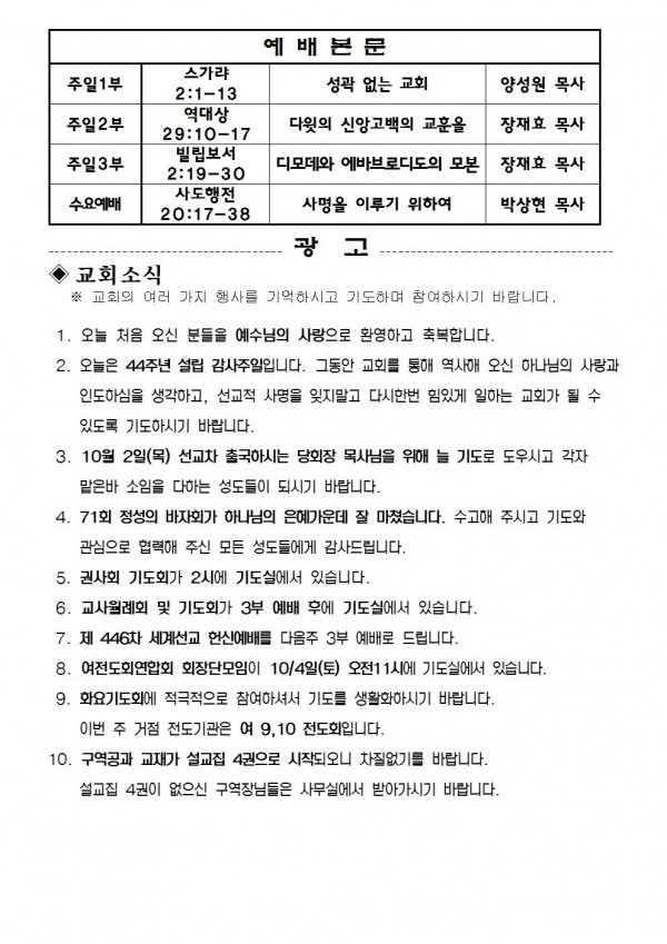 2014년 9월 28일 예배본문 & 교회소식 페이지 정보 작성자 최고관리자 작성일14-09-26 20:31 조회10,000회 관련링크 이전글 다음글 목록 본문 2014년 9월 28일 예배본문 & 교회소식 이전글 다음글 목록
