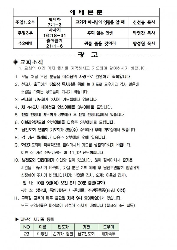 2014년 10월 5일 예배본문 & 교회소식 페이지 정보 작성자 최고관리자 작성일14-10-02 18:47 조회9,745회 관련링크 이전글 다음글 목록 본문 2014년 10월 5일 예배본문 & 교회소식 이전글 다음글 목록