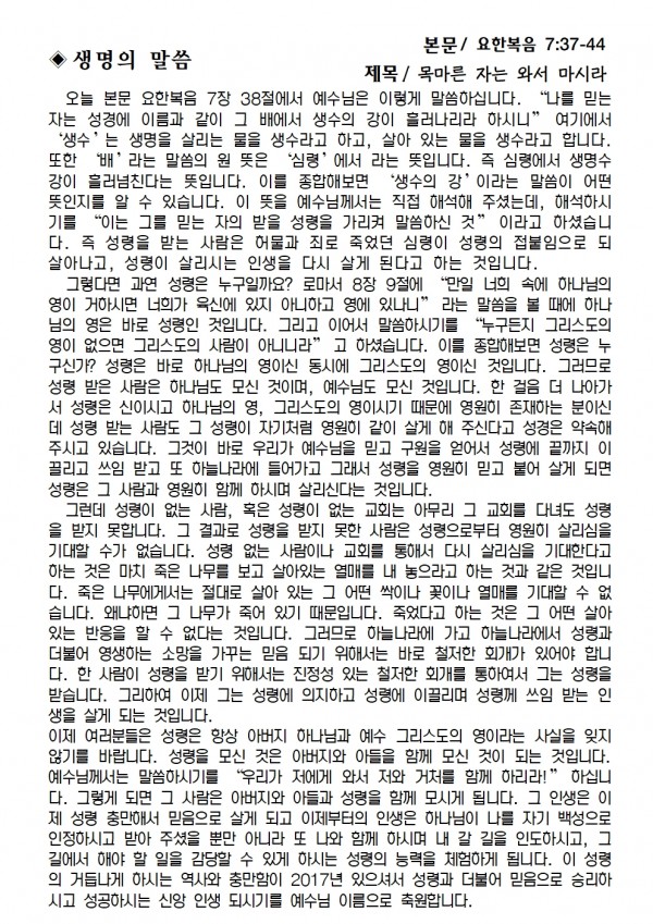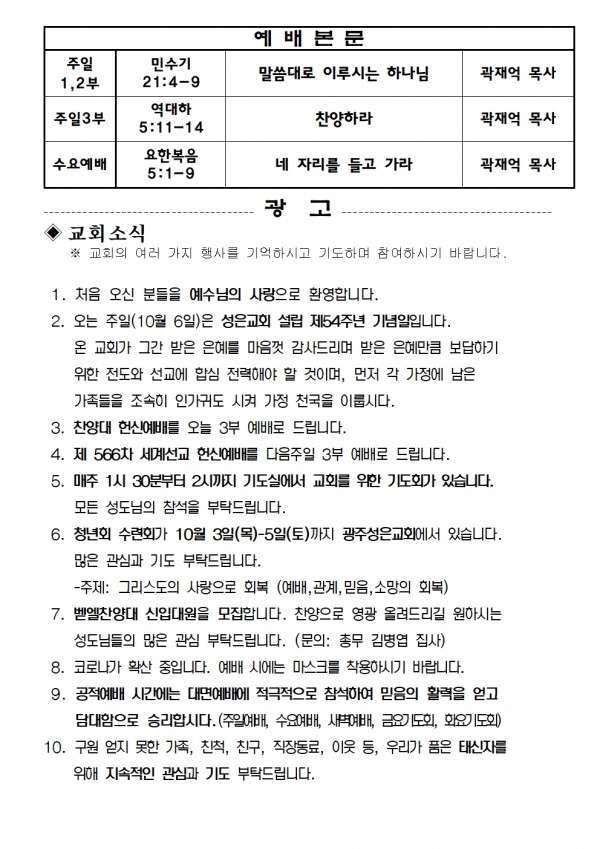 2024년 9월 29일 예배본문 & 교회소식 페이지 정보 작성자 성은교회 작성일24-09-27 11:40 조회3,733회 관련링크 이전글 다음글 목록 본문 2024년 9월 29일 예배본문 & 교회소식 이전글 다음글 목록