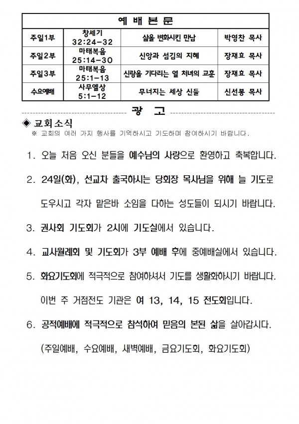 2014년 6월 22일 예배본문 & 교회소식 페이지 정보 작성자 최고관리자 작성일14-06-20 16:49 조회9,854회 관련링크 이전글 다음글 목록 본문 2014년 6월 22일 예배본문 & 교회소식 이전글 다음글 목록