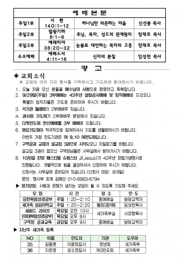 2013년 9월 8일 예배본문 & 교회소식 페이지 정보 작성자 최고관리자 작성일13-09-06 17:41 조회10,207회 관련링크 이전글 다음글 목록 본문 2013년 9월 8일 예배본문 & 교회소식 이전글 다음글 목록