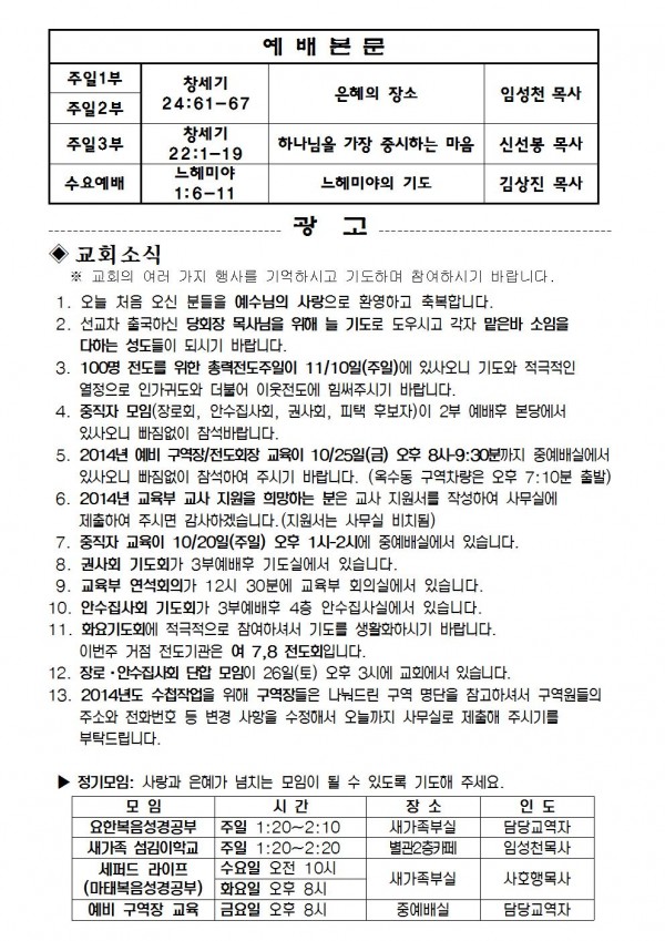 2013년 10월 20일 예배본문 & 교회소식 페이지 정보 작성자 최고관리자 작성일13-10-18 10:43 조회10,171회 관련링크 이전글 다음글 목록 본문 2013년 10월 20일 예배본문 & 교회소식 이전글 다음글 목록