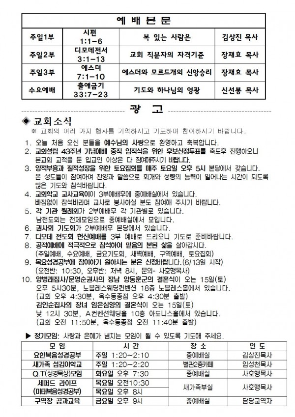 2013년 6월 9일 예배본문 & 교회소식 페이지 정보 작성자 최고관리자 작성일13-06-08 14:57 조회10,446회 관련링크 이전글 다음글 목록 본문 2013년 6월 9일 예배본문 & 교회소식 이전글 다음글 목록