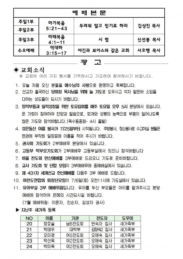 2013년 6월 30일 예배본문 & 교회소식 페이지 정보 작성자 최고관리자 작성일13-06-28 13:29 조회10,409회 관련링크 이전글 다음글 목록 본문 2013년 6월 30일 예배본문 & 교회소식 이전글 다음글 목록
